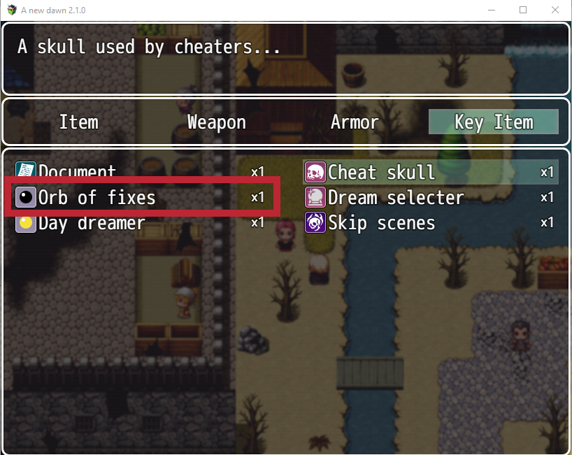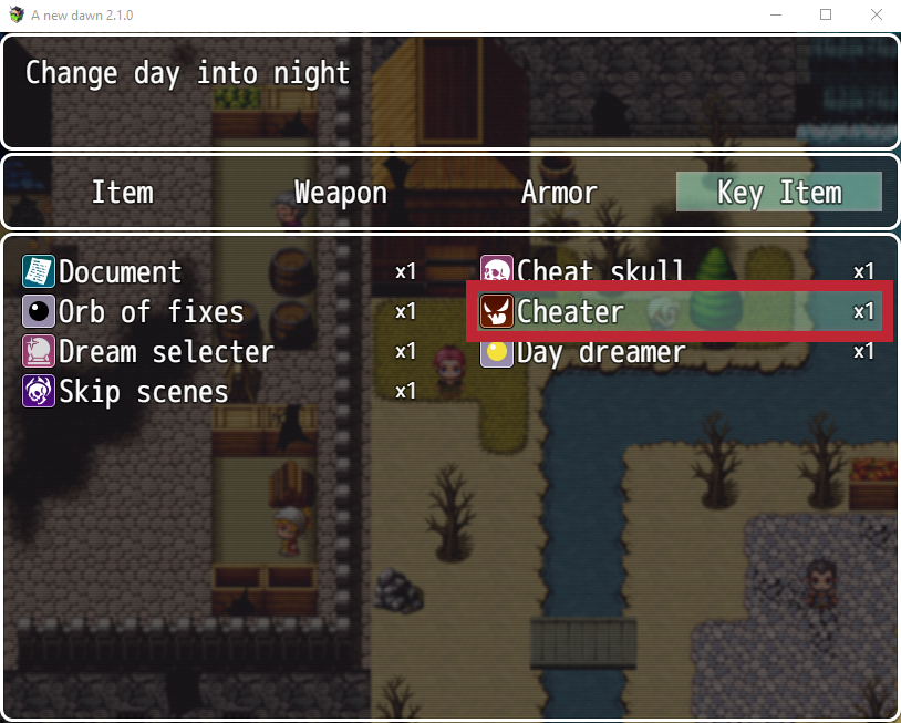 Simply click the item and enter this code:20005981. Then you can make four options, change corruption, cum addiction or give bread and silver. The item will ask if you want to remove the HP/MP cost from the game which means that nothing will change Victoria's MP or HP and you will need to use the item showed above named Cheater to change day into night and sleep to change night into day. To change back simply select no and the MP/HP cost will be back in the game again.
