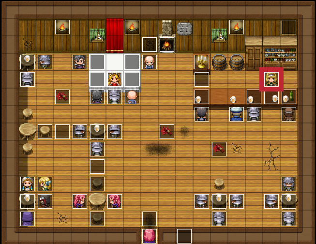 Mary is located at the red square in the tavern